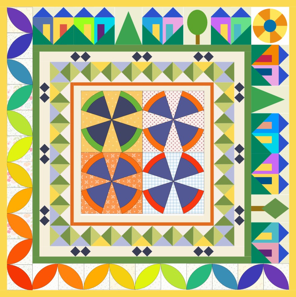 (The original quilt, above.) I also want to make a spring version in a smaller size. The pattern has three sizes of this block, with two different borders. It can be found in my pattern shop, and for this February, it is on sale…and without a coupon! It expires at the end of February. Okay, we are almost finished with this post.