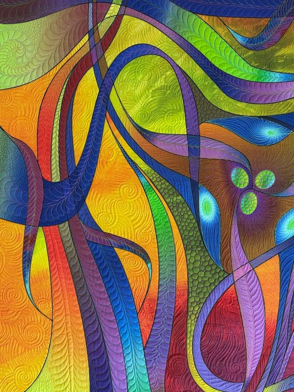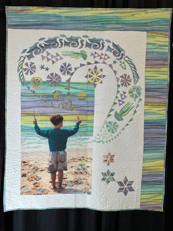 I’m still trying to get used to digital prints being “quilts” but I’m making progress on accepting tri-layered, quilted rectangles as quilts, no matter how they started. Seeing some of the entries in the Carrefour Patchwork Show in France this past year helped me on this journey.