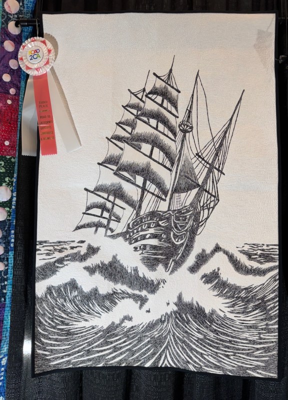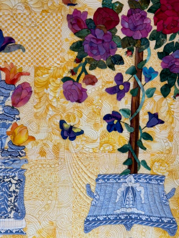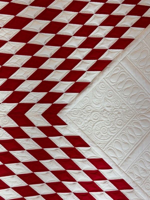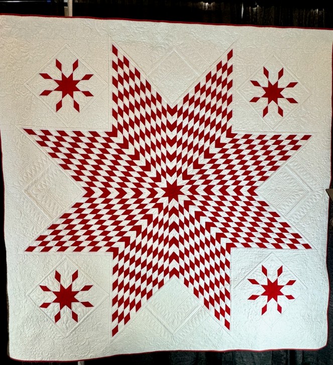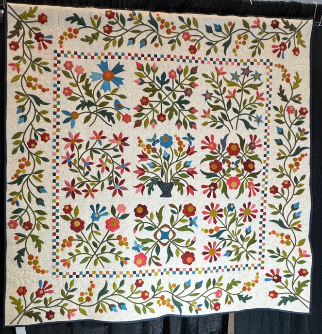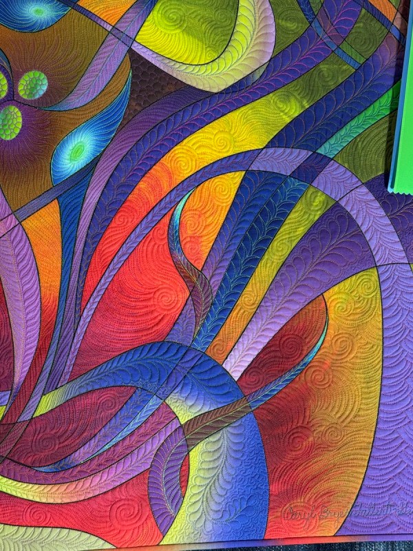 You saw some of Vicki Ruebel’s quilting earlier, on the Star of Bethlehem. Here is one of her quilts.