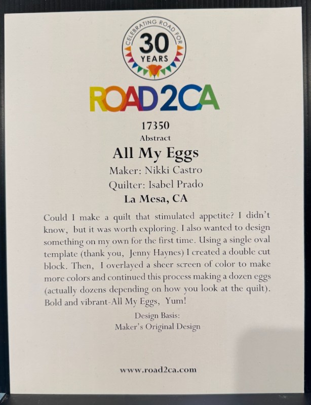 The Road to California Quilt Show was held January 20-24, 2026 in Ontario, California — a location about 45 minutes to the east of Los Angeles. It is close to the Ontario California airport, so we attract many attendees from all over California, the Mountain West, and others who may drive or fly in.