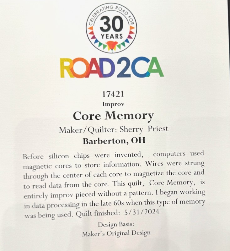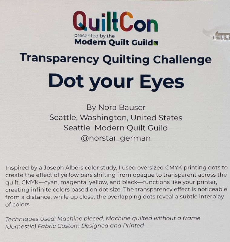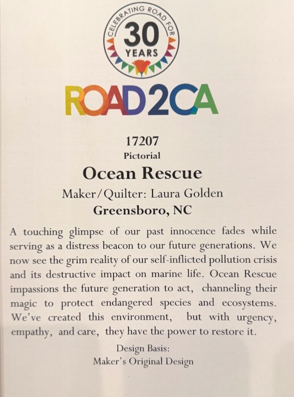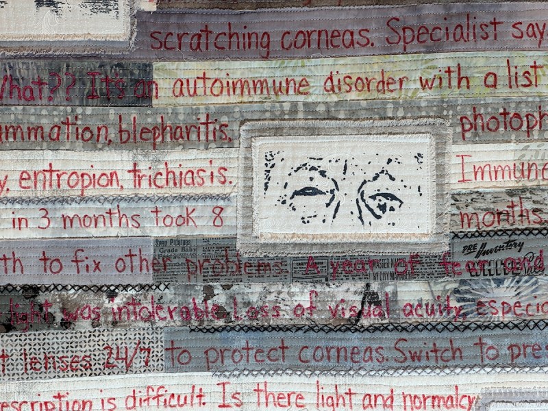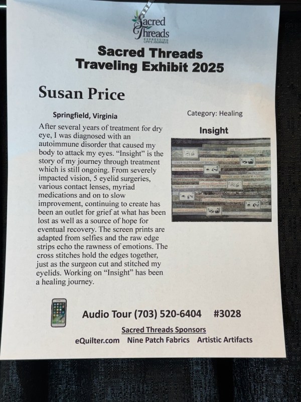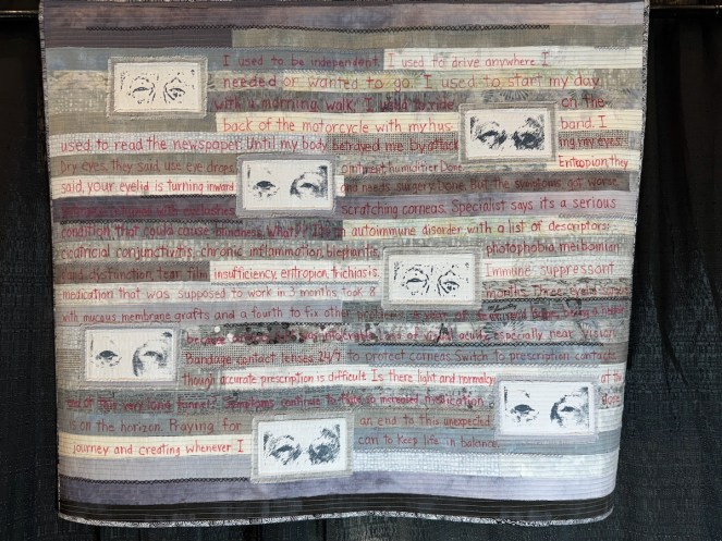 Given that we quilters are so dependent on our eyesight, this quilt’s story was sobering.