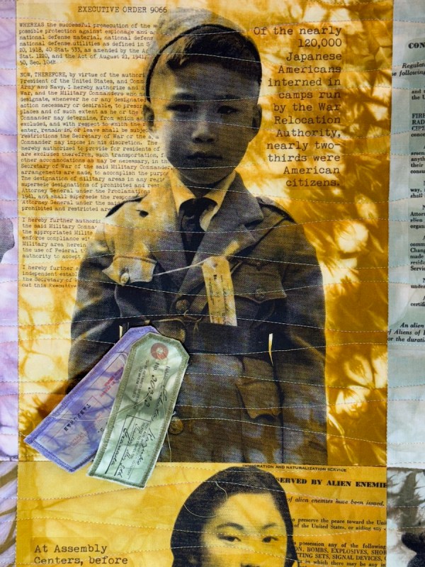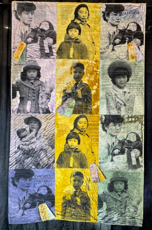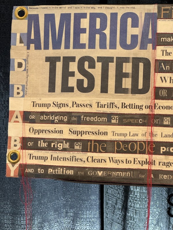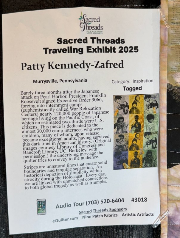 So much in this exhibit to think about, such as, is a paper “quilt” a quilt as we think about it? I don’t know, but that’s trivial compared to the issue being raised. The fact that it is cut out from a single newspaper is remarkable.
