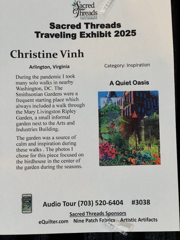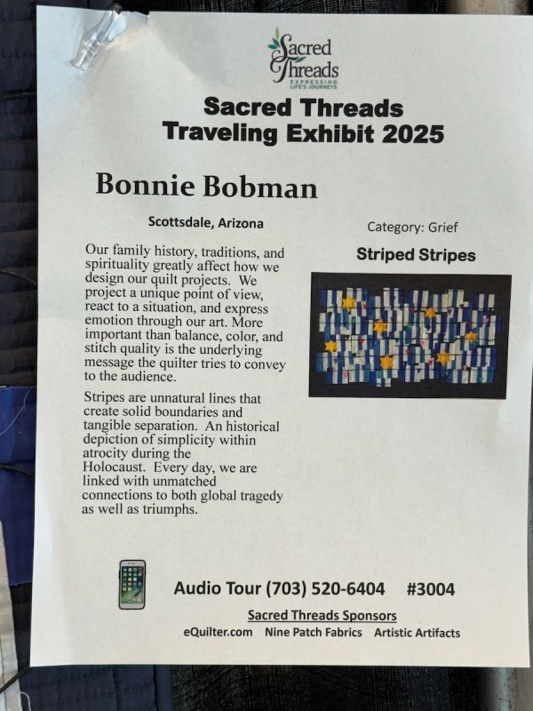 You can read more about Sacred Threads online. Here are a few of the quilts that were in Road this year.