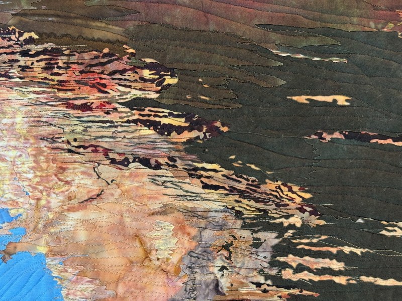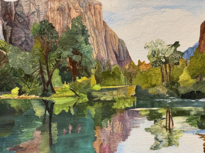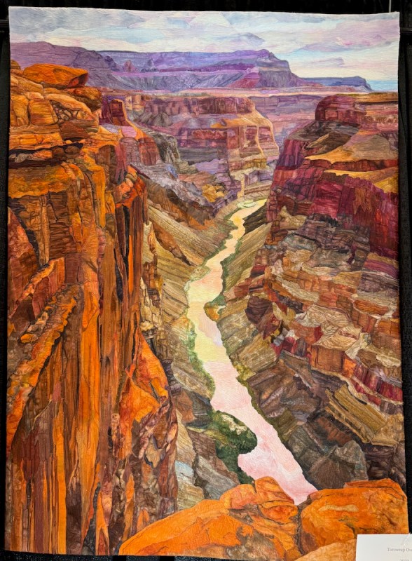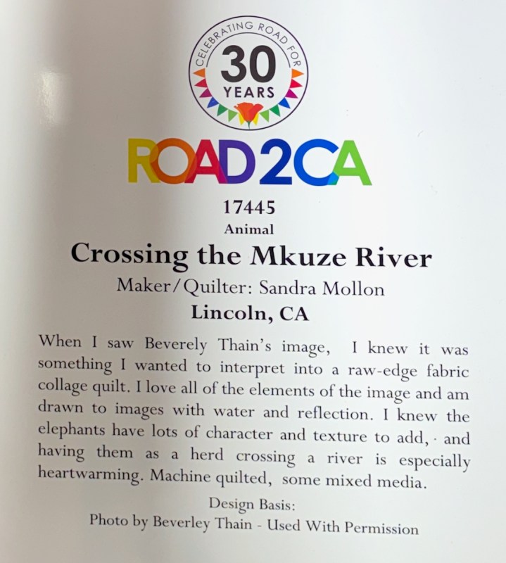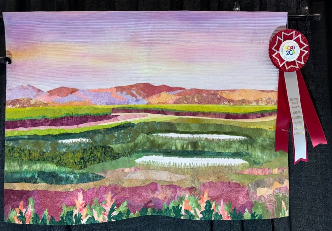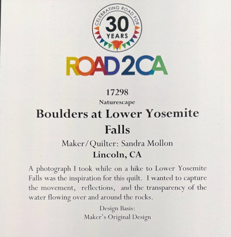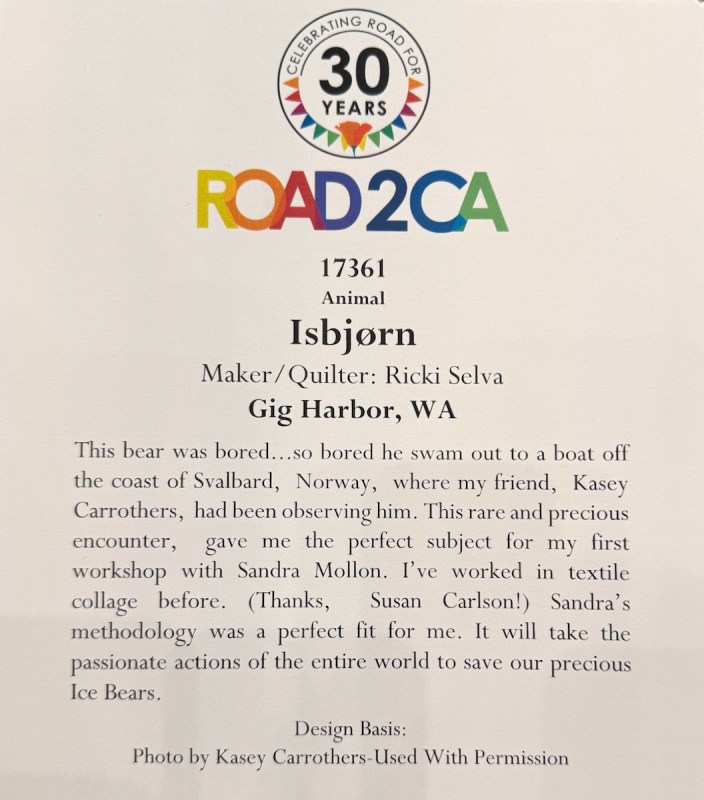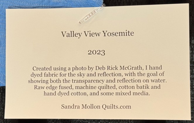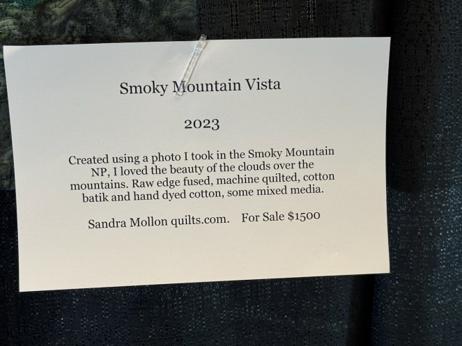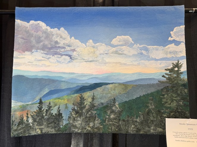 Sandra Mollon had more than one quilt in this show, and several of her students also had quilts; I liked that all the photographs were attributed. In addition, Road hosted a special exhibit of some of her landscape quilts. They were all so beautifully rendered.