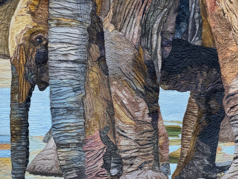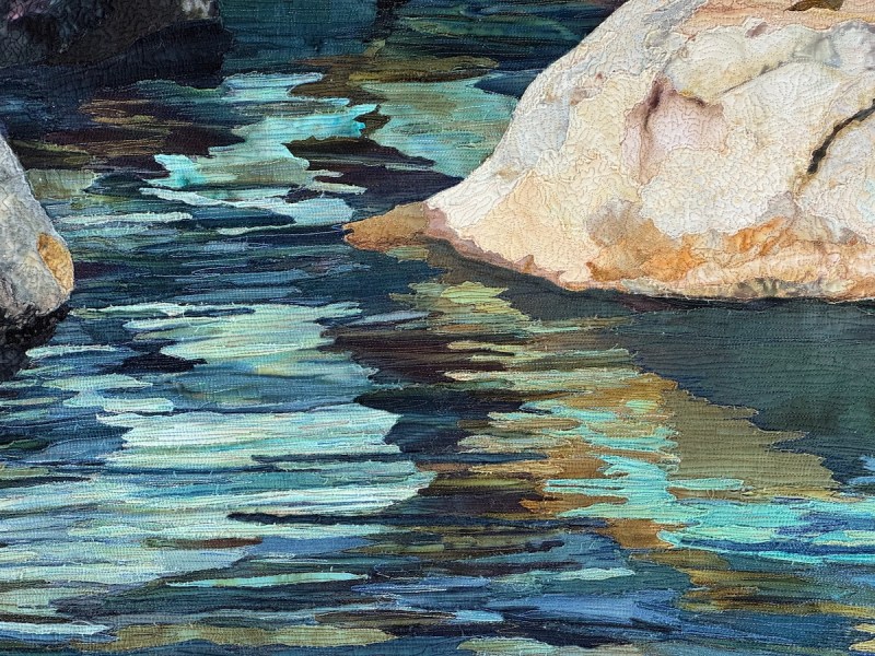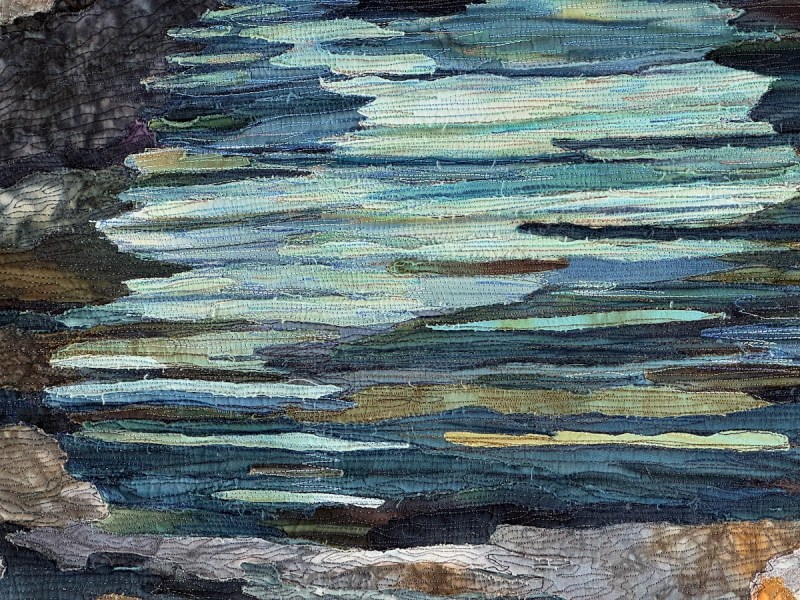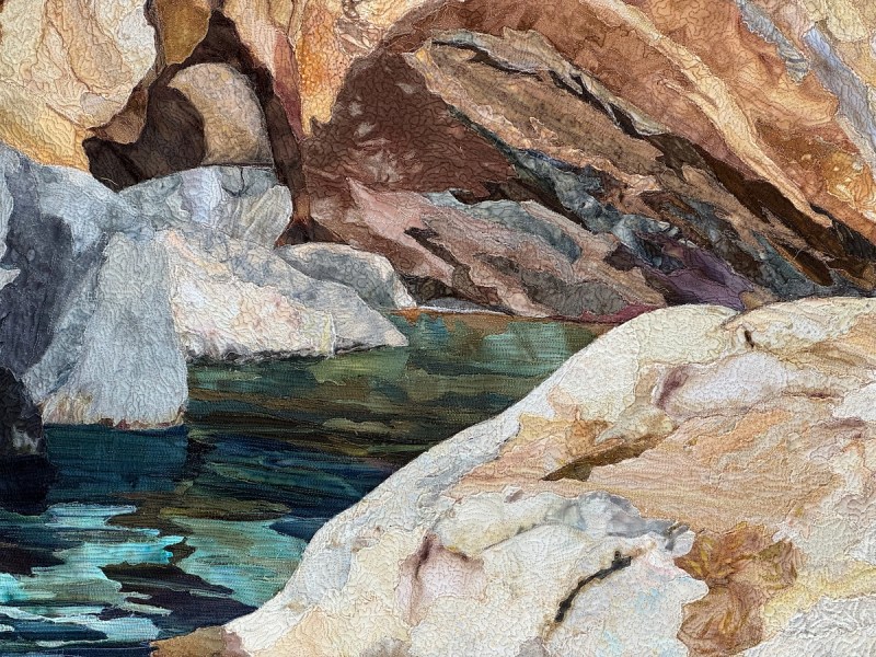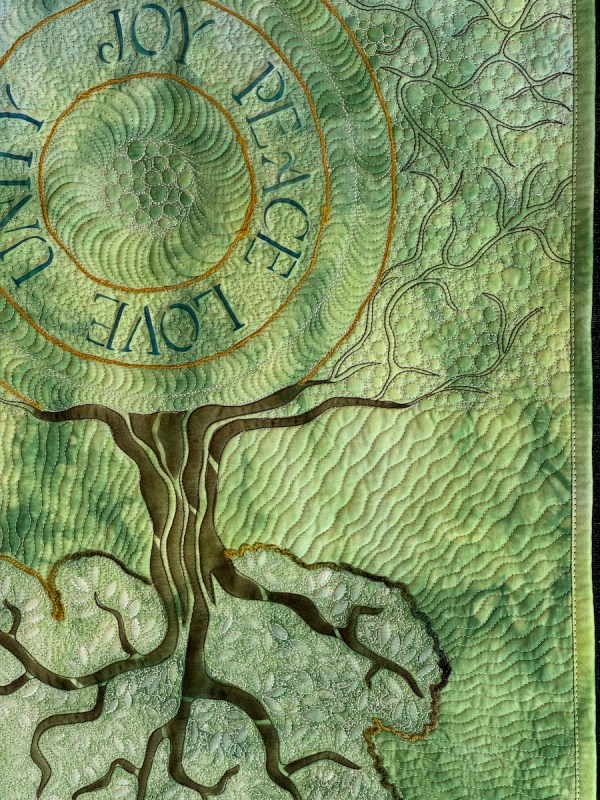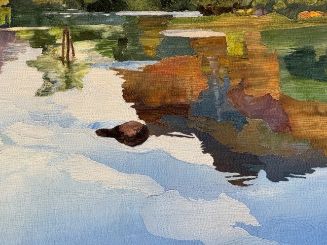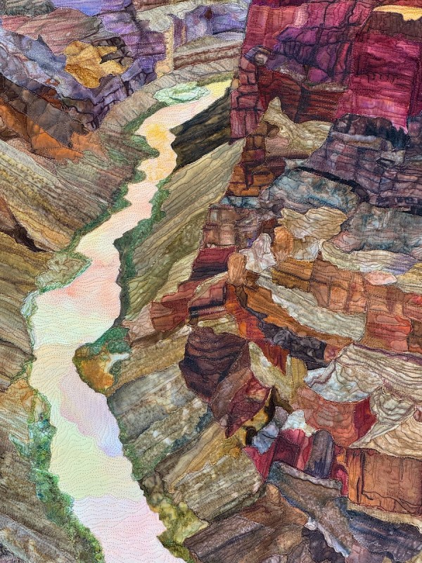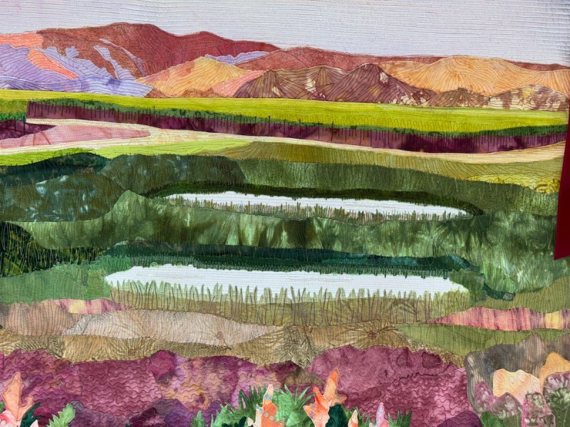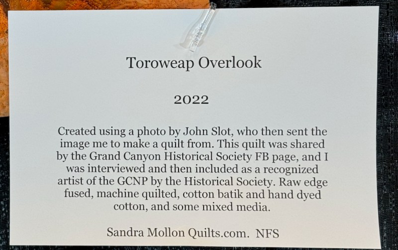 Sandra Mollon had more than one quilt in this show, and several of her students also had quilts; I liked that all the photographs were attributed. In addition, Road hosted a special exhibit of some of her landscape quilts. They were all so beautifully rendered.