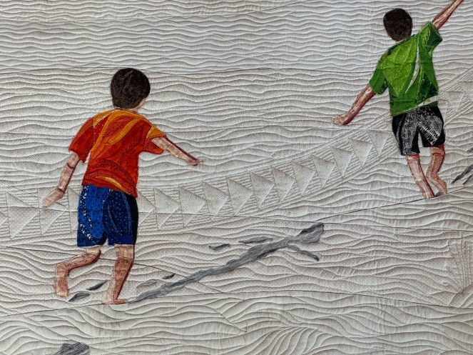 Loved the repetition here, of boys pretending to fly and the quilting.