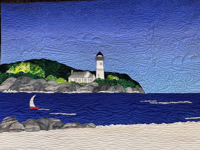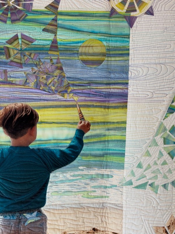 Great detail of the shell. This isn’t a huge quilt, but the little details are charming, especially the sea star in his back pocket.
