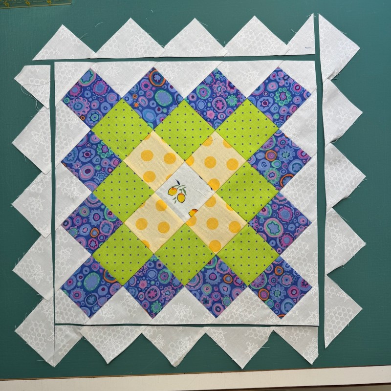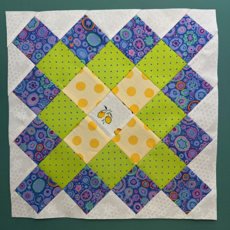 Since I was in the Blossom flow, I re-made the larger 12-inch block version as well, especially since I found that outer border fabric at Road to California this year. It’s in the needs-to-be-quilted stack.