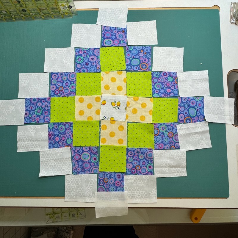Then I looked at the center: it didn’t work at all. So I took that out, went to remake a new one but couldn’t find the pattern. So I drafted up my own, remade the center and carried on. (There’s a metaphor here somewhere, I think.)