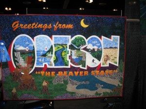 Greetings from Oregon–The Quilt by Carrie Perkins. Clever back art.
