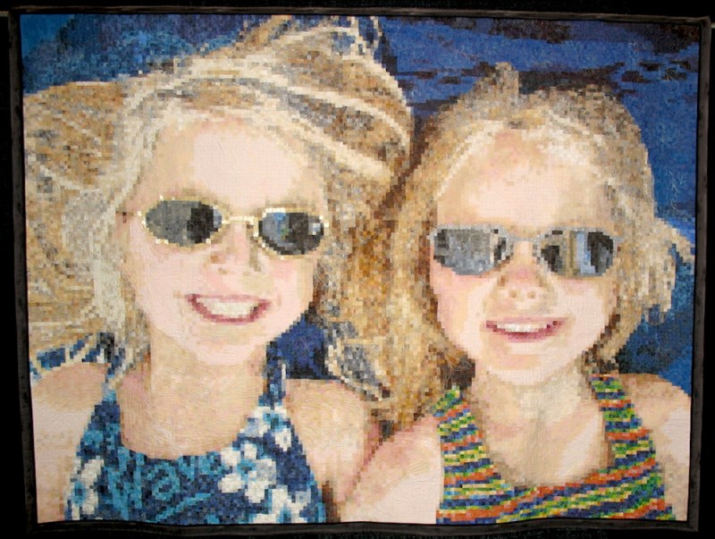 Sunny Girls, by Pat Durbin, This one was a stunner. Teensy little squares (see detail below) made up this quilt–fractured when close-up, but lovely when seen from a bit of a distance.