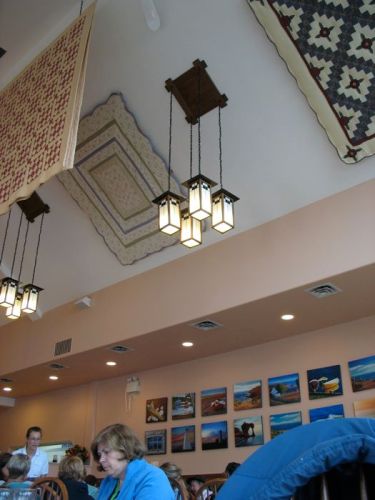 Here’s your kitschy quilt-related photo. Hanging in our next B & B on the wall.