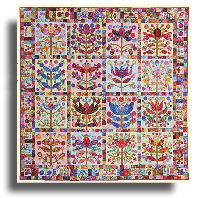 The Material Obsession Quilt Shop in Australia just announced they are putting together a new Block of the Month group for Lollipop Trees, a fabulous applique quilt by Kim McClean. I sent this picture to a friend and asked her if I was crazy for thinking about making this.