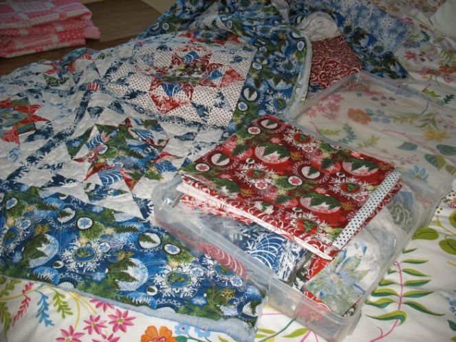 That was triggered by a hide and seek game for the fabrics which I need so I can make binding for my Christmas Quilt. It’s been a looooong week at school, so I thought I’d shove all the grading to the side and make the binding.