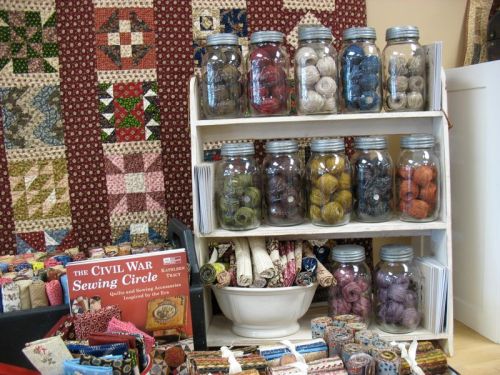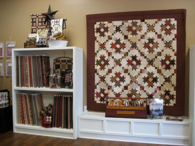 Temecula Quilt Co. is orientated around Civil War Reproductions, with fabrics predominantly in the creams, tans, and deep tones of the color wheel.  Sheryl has lots of great displays everywhere to entice the quilter into diving into the creative process of making a quilt.