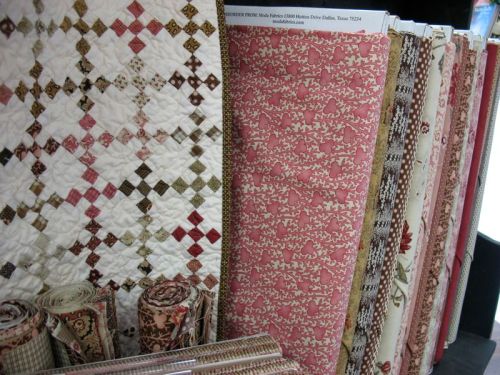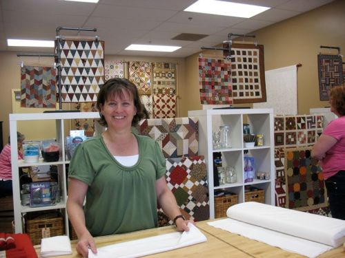They have their own line of quilt patterns.  A “Monthly Mini” program exists that allows you to receive a kit for a mini quilt, and get the pattern too.  I think mini quilts are a good way to try out designs and techniques without investing in huge amounts of time or money.  When I used to take a lot of classes from designer quilters, I finally learned to make a mini quilt, which guaranteed that I would finish the quilt more often than I did when making the bigger (even wall-sized) quilts. You can always learn new things from field trips, I think.  Another good reason to break out of the sewing studio routine once in a while and hit the road.  Here are some more pictures of her shop: