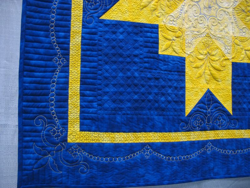 The quilting in this blue corner reminds me of the block Storm at Sea for some reason.