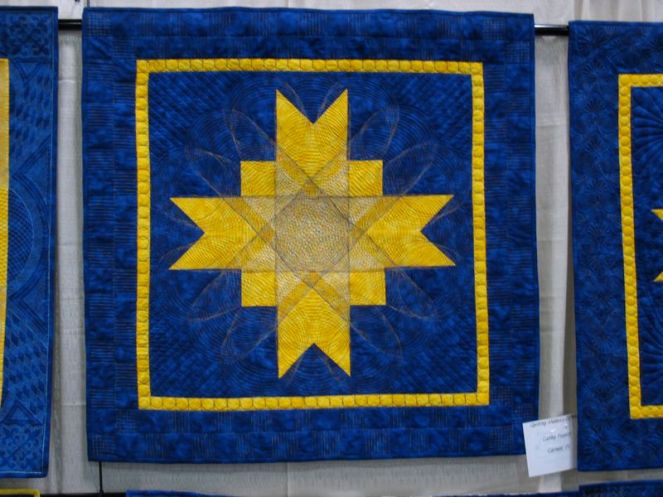 Our local quilt show is fixated on heavy machine quilting, so much so that it’s skewed the typed of quilts that are displayed.  One year they gave several longarm quilters the same mini-quilt and let them go to town on the quilting. Here’s a sampling: