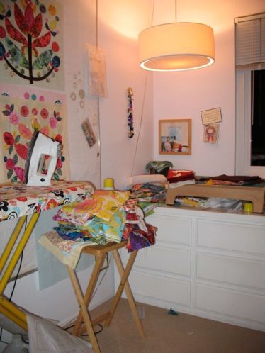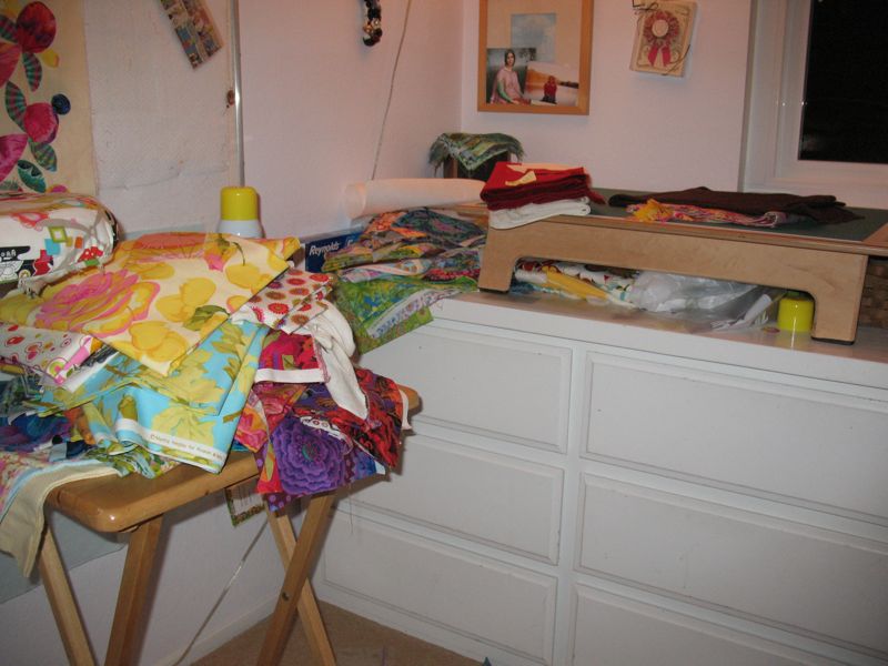 Another lovely view.  Sometimes I just pile the stuff here and there, making way for that next project.  I’ve been trying to finish up a few things (two more coming in the next couple of weeks–on Fridays), yet you can see on the corner of my elevated cutting table a stack of reds and whites.