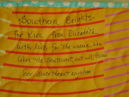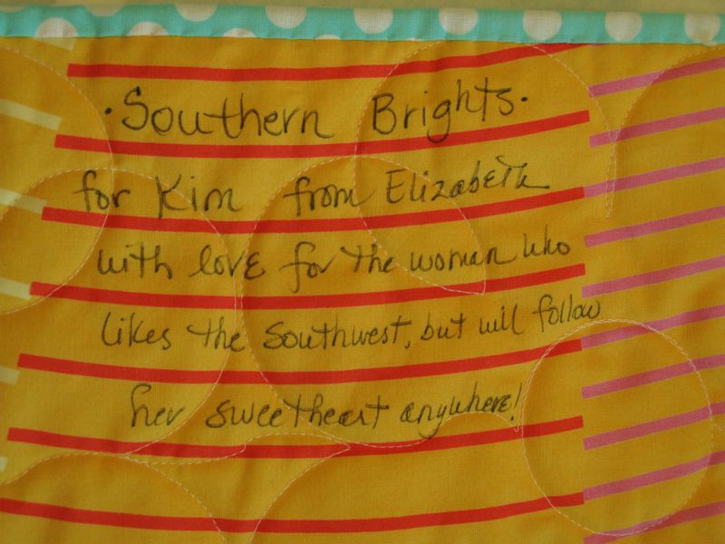 This is their family, taken at a family camping trip (quickly! and that’s why Emilee has no shoes on), in the mountains above Phoenix Arizona, a place they call their home.  But only for another day or so, because he’s been promoted in his corporate job and they’re off to Cinncinati Ohio.  I love that she would follow him anywhere, so I decided to make her a quilt to honor her love of the Southwest and her bright and sunny personality.