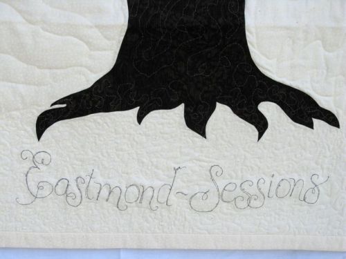 So the idea was, since we were headed to a family reunion, to make a banner for my husband and I, like I’d made for my mother. Hers was more successful, and it’s all on account of the quilting. I hadn’t yet taken a fusible class, so I was working with my old stand-by which unfortunately leaves the fabric like a slab of wallboard.
