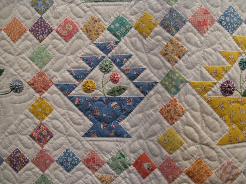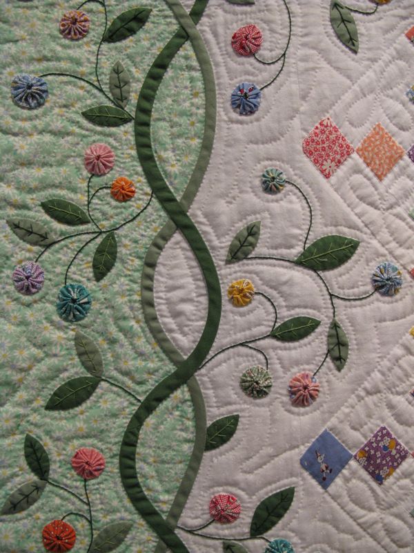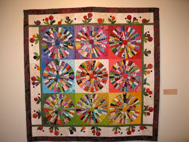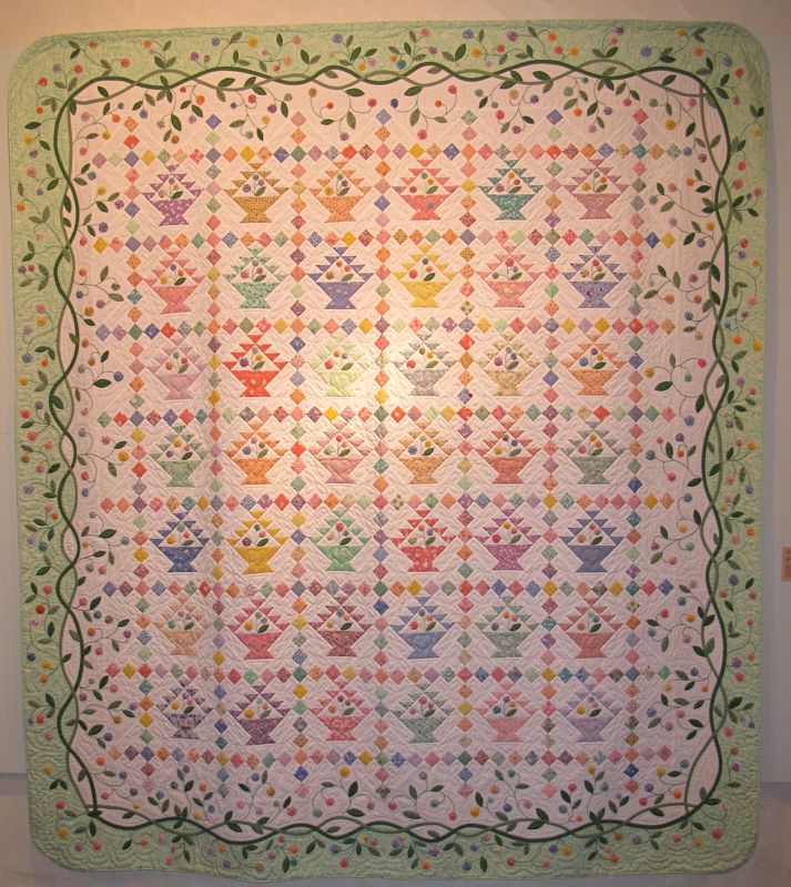 CharLee’s Flower Baskets was made by Cheryl Barlow. This whole room in the museum had a series of quilts done in pastels, with lovely applique work and inventive quilting. It was like tasting all the best ice cream flavors, but in quilting.