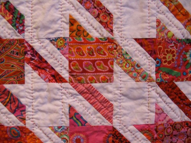 This houndstooth quilt by Brittany Burton is titled Baby Love. I’d never seen a houndstooth quilt before and I think this would make a great scrap quilt–she used lots of Kaffe Fasset fabrics to deliver the punched-up color scheme.