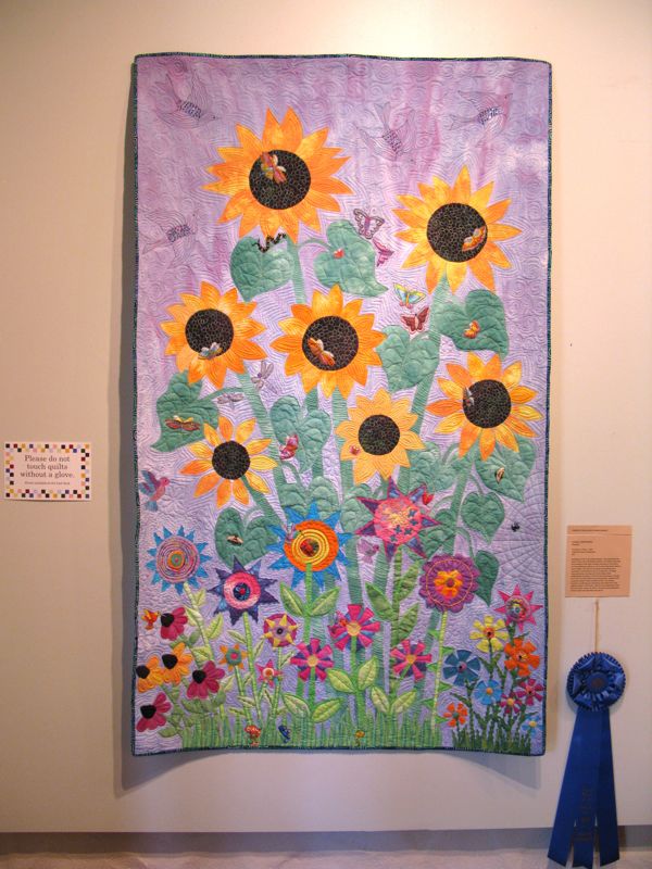 Laurel Christensen brings us Sunflower Forest, a jumble of flowers and grasses and colors and shapes–so wonderful. I was impressed with the high quality of the quilts in this show. I only saw one potential dud (shall remain nameless) and perhaps that evaluation was in the eye of this beholder.