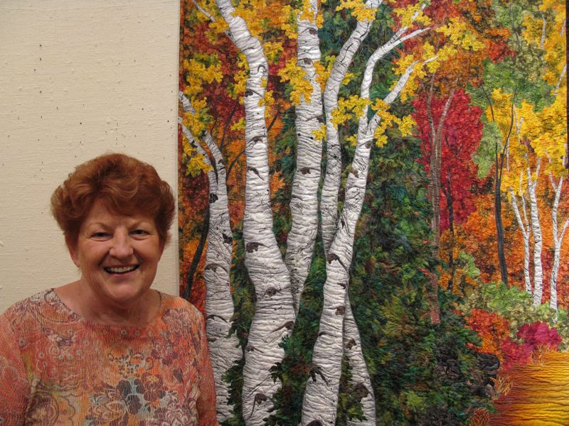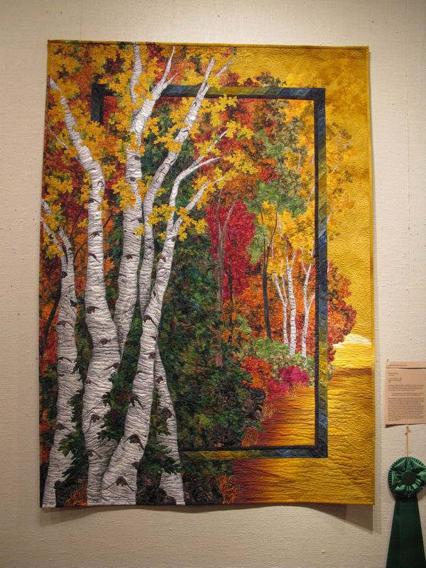 We ran into Susan Gilgen, as she walked around with some family members. This quilt, Autumn Birches, had also been juried into the most recent Houston show, winning first place in the Art/Naturescapes category–it was a masterpiece!
