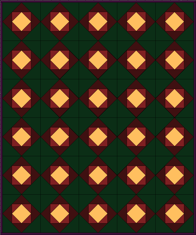 This is my mock-up of what it could be.  Nine-inch blocks.  Elegant in its simplicity.  But it will be richer looking with all those different fabrics shown above.