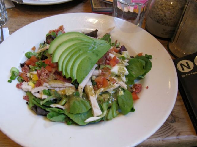About this time, my daughter found me (love having cell phones!), exhausted from two and half days of non-stop go go go, so we went to some place close and delish for lunch: Le Pain Quotidien, where I had this artsy cobb-type salad.