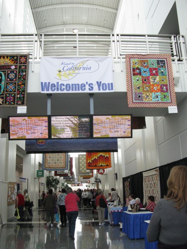 My friend Leisa picked me up early, and we were there in the show by 9:40 (we had to wait for the end of the line to arrive so we could get in after them). After going to this show for umpteen years, we’ve seen a lot of changes and have perfected our plans. I always head to the quilt show first, and she likes to give the booths a once-over before doing that. Really the best time to see the quilts in the show is around 4-6 p.m., when all the busloads of shoppers have gone home and it’s cleared out, but I didn’t know if I would last that long.