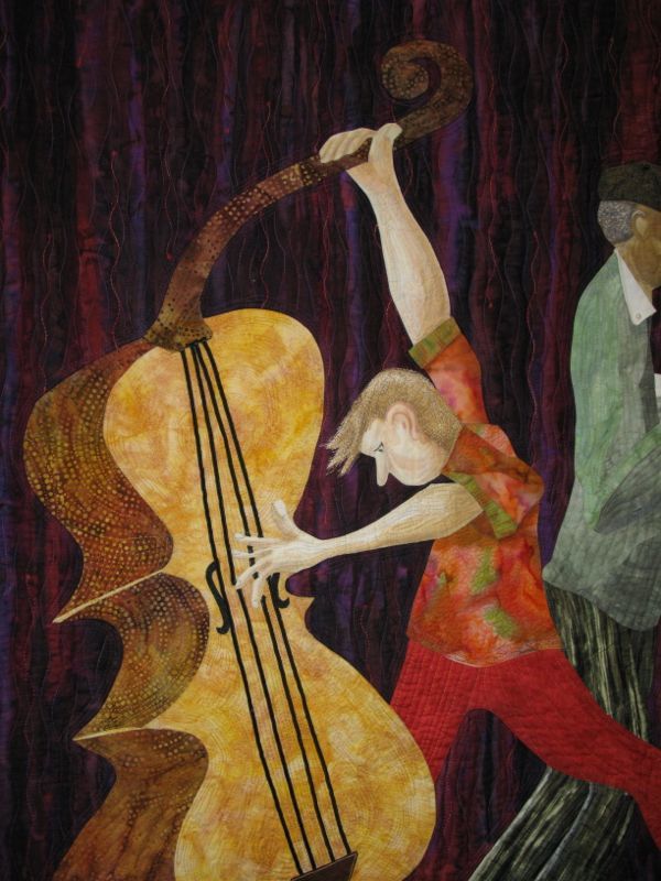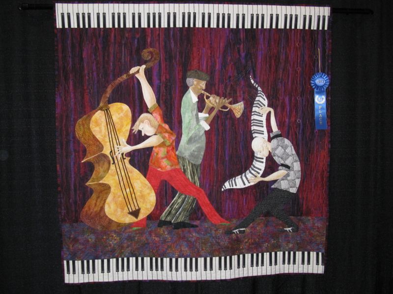 Kathryn Nolte, from La Habra Heights, California created this visual feast, titled Take in the Night Blooming Jazz, Man. Sinewy, fluid shapes echo the subject of her quilt, with a real live “piano key” border.