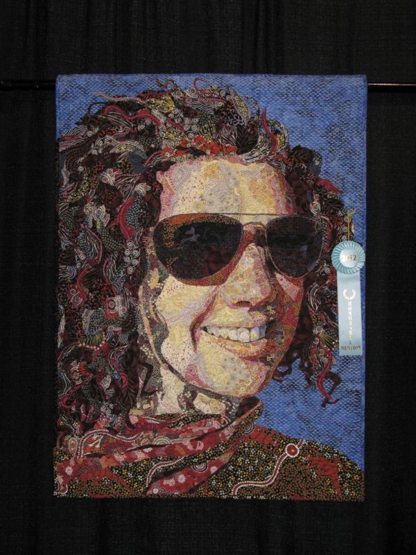 Holly Dominie, from Readfield Maine, took Australian fabrics to a class given by Susan Carlson, intending to experiment in the “Pointillism” style. This portrait of her daughter is titled Queen of My Heart. It was stunningly beautiful, and I am sad that they hung the ribbon right on this work of art, which was based on photographs Dominie had taken.