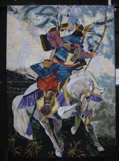 Was I influenced by her expert quilting, writing in text into the background of her quilt? No doubt. These are words from the teachings of “Bushido–which is the way of the warrior.” Her husband is a “student of Japanese history, in particular the Samurai culture” and it obviously influenced her subject matter.