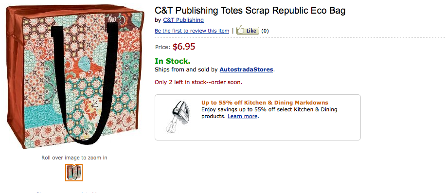 But others had a legitimate question: if they create using Spain’s fabrics and that fabric is shown in books and on patterns, will they be sued as well? I read through all the comments and didn’t see a response to that, but it was made clear once one commenter provided a link to Amazon and the tote bag.
