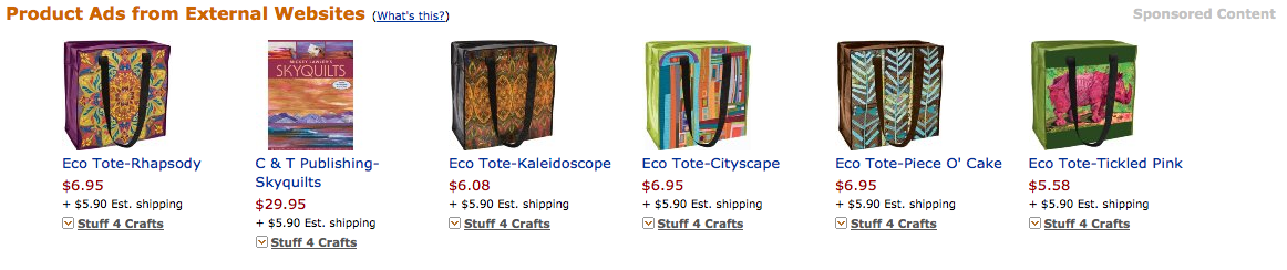 As a side light, a tote bag was made to publicize the book (shown above in a screenshot from Amazon). This particular screen shot was right above another shot of other quilters having their own totes as well (shown below).