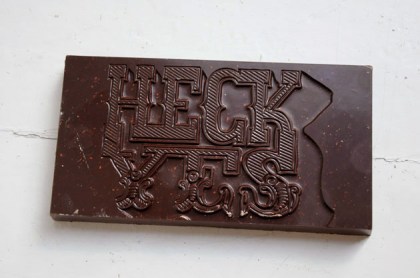 Neither.  Chocolate. Heck, yes. (I’m just quoting the chocolate bar in the photo above.)