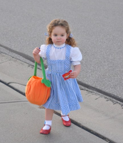 A few years ago, my granddaughter wore this Dorothy blue-gingham dress for trick-or-treating, a gift from her grandmother on the other side of the family (and a hand-me-down from her older sister). A classic.