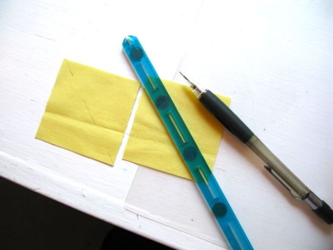 You can see it in this photo here. My stitching line is not ON the pencil line, but towards the outside edge by a couple of threads. This allows you room for the fold, and so it won’t distort the shape of this smaller unit in your block.