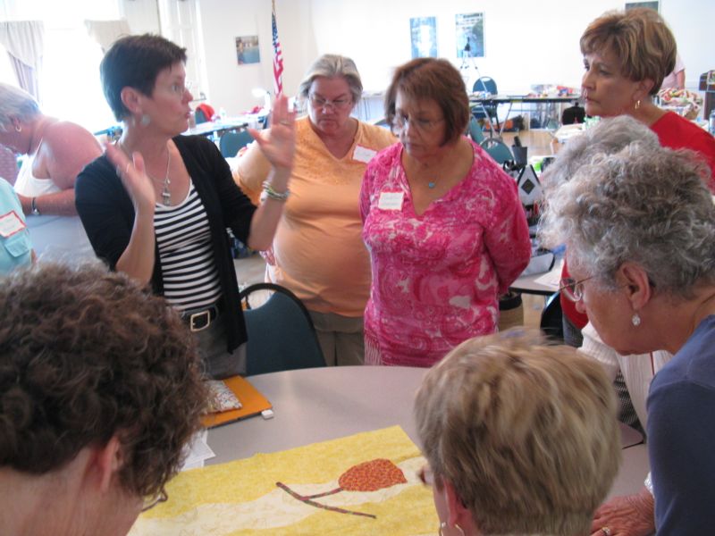 She gathered us round to point out differences in ways of doing things, and I must say as a sidelight, I was really impressed with this guild and this class; such lovely ladies and they made me–a stranger–feel very welcome in their midst.
