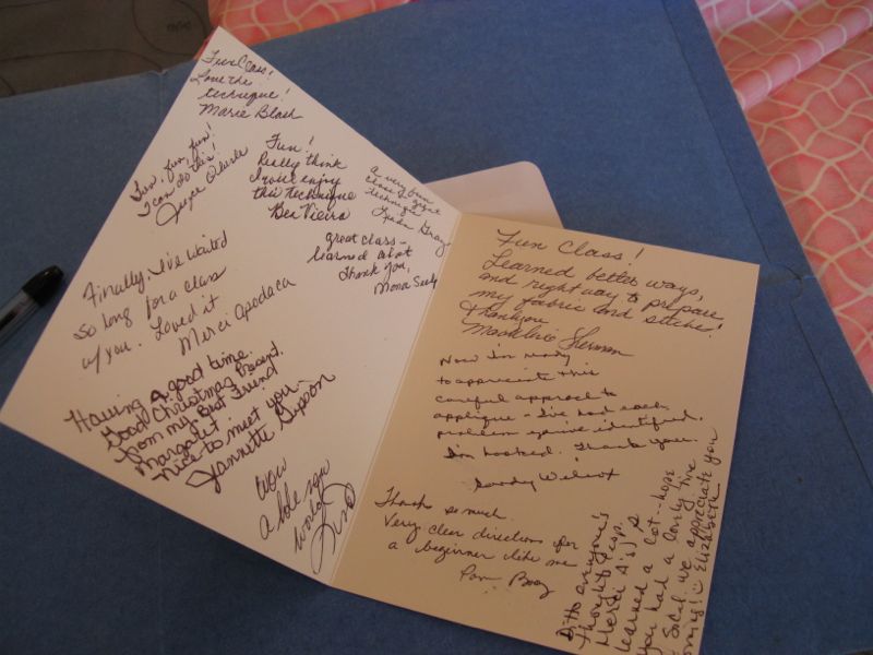 During class, a folder circulated and we all wrote a short note to Becky Goldsmith.  I’d never seen this done before and I thought it was quite sweet. And speaking of sweets. . .