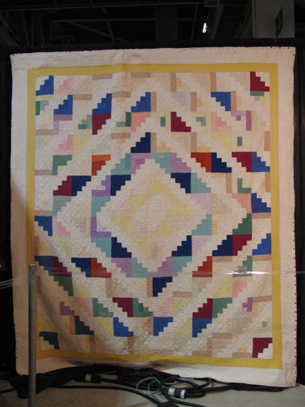 I’m just sneaking in a little slide show here before I finish up the Long Beach quilt posting. This collection of quilts belongs to Claire McKarns, who has been “collecting, buying and seeling antique quilts for 30 years.” Most of the makers are unknown, but they date from the late 1800s on up into this century. A special note to one of my favorites (shown below, but above the slide show).