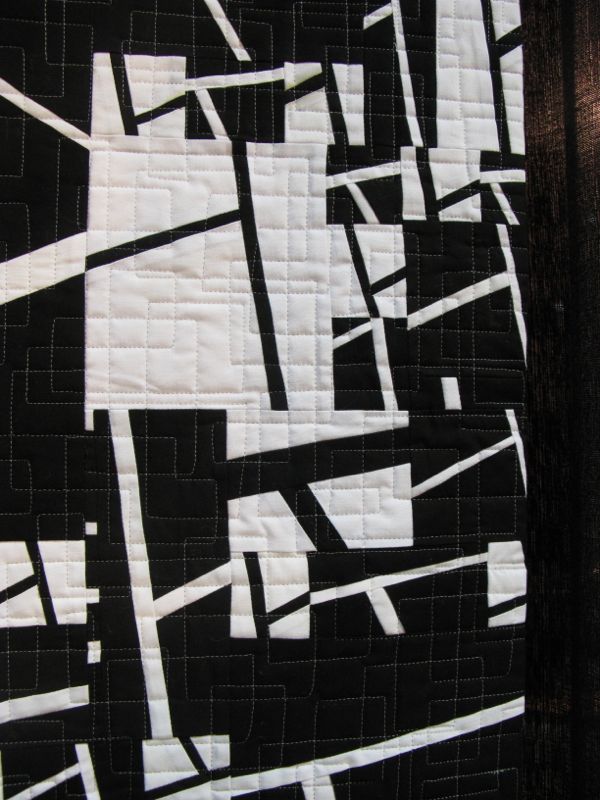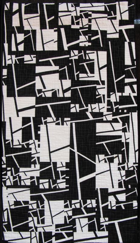 Annette Guerrero in her quilt, Gridlock, used a two-line motif in the shape of a modified T to create her quilt. From the smallest to the largest piece, you can see the T-construction.