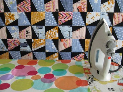 I ironed the backing for Summer Treat.  As I was working on this, it struck me on how lucky I am to be working with all this beauty.  I had Harvesting the Wind on the pinwall,  and was ironing the giant cirles of the backing on my fancy-schmancy ironing board cover.  I stepped back and took a shot just to remind myself that when I’m parsing logical fallacies, comma splices and MLA format, I really do have this vivid other life that feeds me.