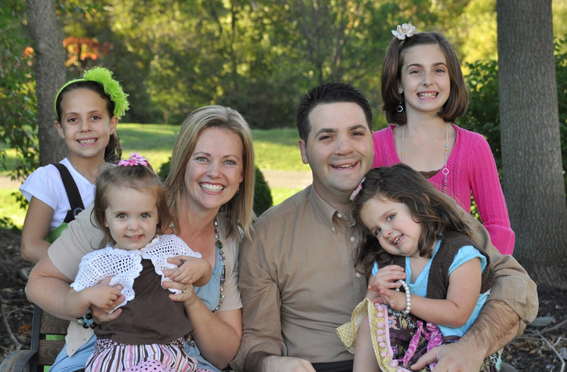 But I also think of family trees, of generations linked by blood and branches. (This is a picture of my son Matthew, his lovely wife Kim and their four daughters.)