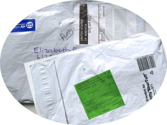 I had just about given up hope — no, I HAD given up hope of our Far Flung Bee block exchange ever finishing its run, so I put up a note on Flickr. So I was pretty excited today to get a wee package in the mailbox, all the way from New Zealand.