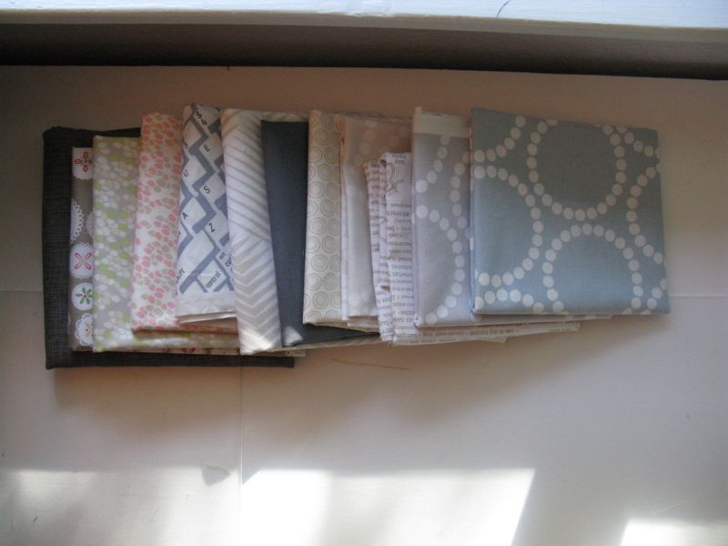 Next, I compiled this stack of fabrics, mostly new, to complete my latest Mid-century Modern Quilt Bee block.