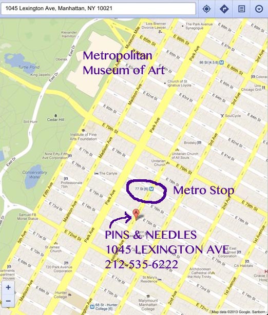 I’ve been in New York City for a week, and while there I discovered a new quilting/fabric shop, on the upper East Side, a few blocks from the Metropolitan Museum of Art. It’s called Pins and Needles.