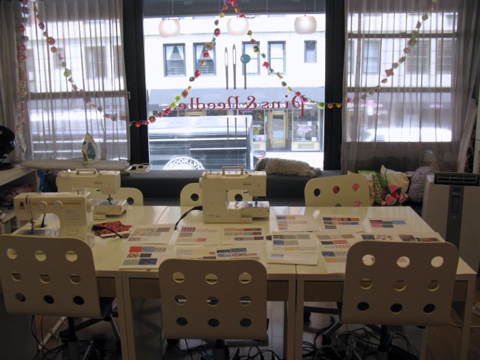 The classroom and looking out the window. There are basically three fabric stores that cater to quilters and home sewists in New York City: City Quilters (midtown), Purl Soho (Soho, or lower third of Manhattan) and now this gem of a shop.